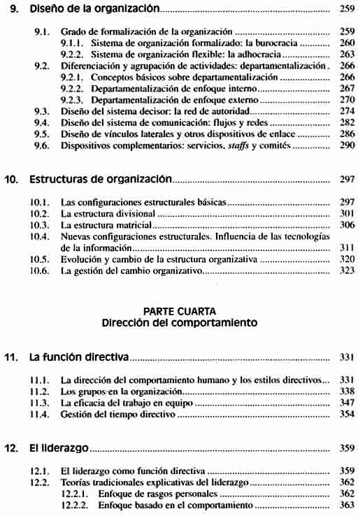 La primera parte del libro está dedicada al estudio de los fundamentos de la organiza-ción, de su administración y de la toma de decisiones, en un entorno caracterizado por una creciente internacionalización y donde la responsabilidad social y ética adquiere una nueva dimensión. Los demás capítulos están dedicados al estudio de las funciones de planificación, organización, dirección del comportamiento y control, que conforman la tarea directiva, sin olvidar cuestiones actuales, tales como la incidencia de las nuevas tecnologías en la organización, la gestión del cambio, la dirección de equipos, el uso eficaz del tiempo, la gestión de la creatividad, o el manejo del conflicto y la negociación. En definitiva, se desarrollan todos los conocimientos y técnicas que debe poseer un directivo para ejercitar sus habilidades de diagnóstico e intervención en la realidad de la organización.