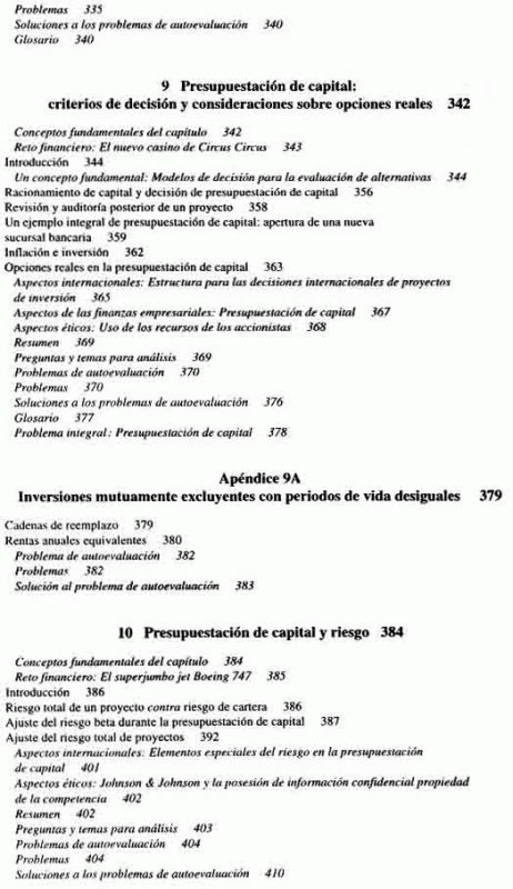 Bibliogrfía / Incluye Apéndice A. impuestos y depresiones. -- Apéndice B. Introducción a Internet con aplicaciones finanzas. -- Materiales de referencia. -- Indice de términos de glosarios. -- Créditos fotográficos. -- Respuestas a los problemas seleccionados.