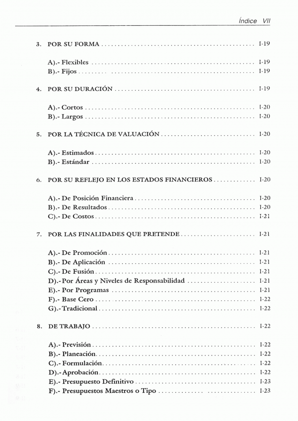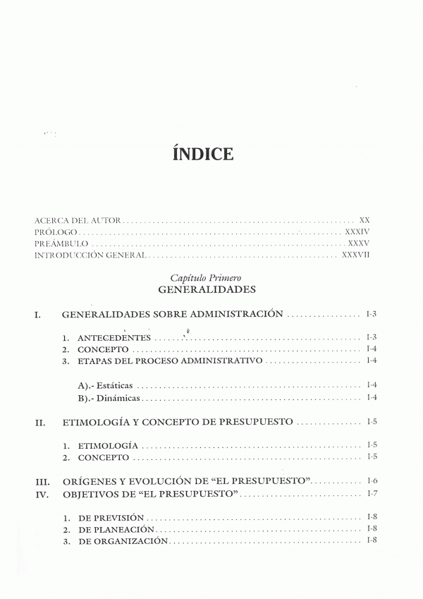 En esta obra Básica, las mas completa sobre la materia, el autor nos muestra los " antecedentes, generalidades, requisitos, características, e importancia, así como la forma de diseñar, implementar, dirigir, y controlar el presupuesto; determinar y corregir a tiempo las variantes y desviaciones, todo ellos en cualquier tipo de presupuesto (tradicional, por áreas y niveles de responsabilidad, por programas y actividades, y base cero) en cualquier entidad, tanto en la teoría como en la practica, terminando con la conexión entre administración, la contaduría, y el presupuesto, para su ubicación y jerarquía.