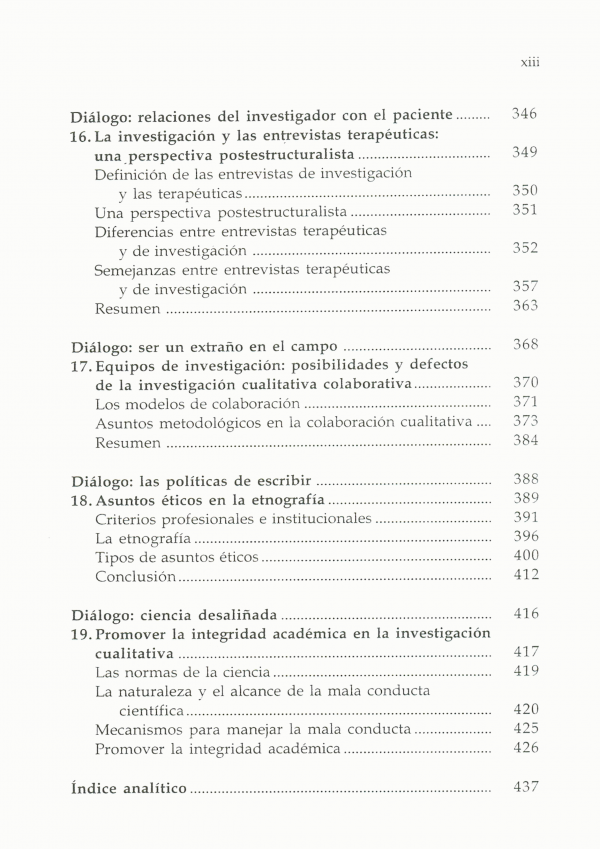 El presente texto, trata de los asuntos críticos en los métodos de investigación cualitativa. Los capítulos de este libro tratan, asuntos que aun no se han resuelto y abordado en la bibliografía existente.La obra se inician con un diálogo común, en el que los autores hacen preguntas y comentan el concepto que se presenta, de esta manera dan una sensación de la controversia de los métodos de investigación cualitativa.