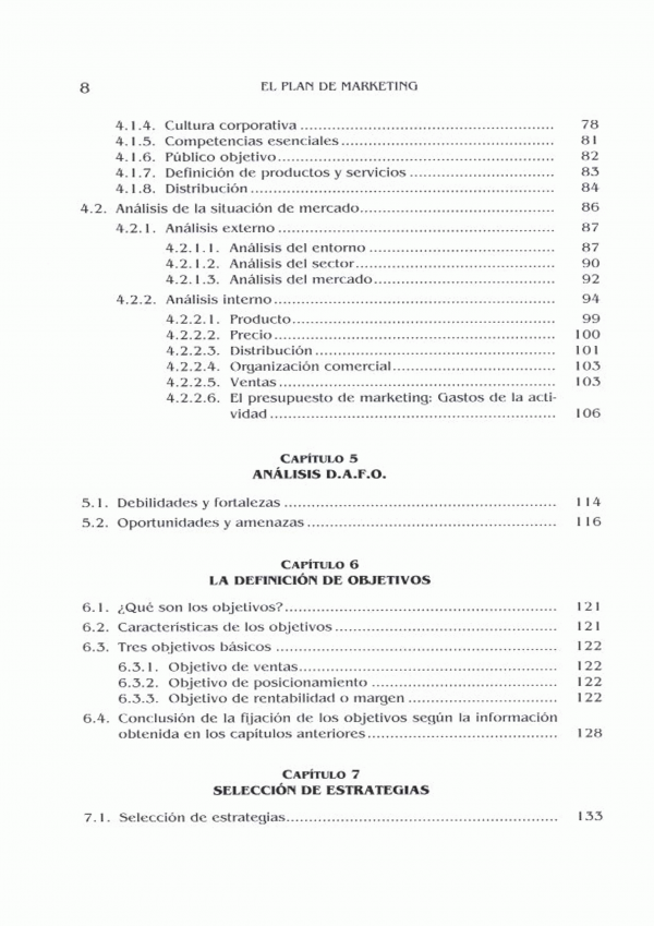 El presenta libro se centra en las fases de análisis del entorno, evolución de fortalezas/debilidades y oportunidades/amenazas de la posición de la empresa y sus productos.
