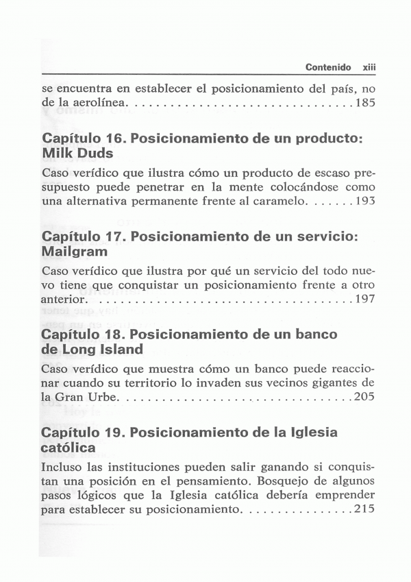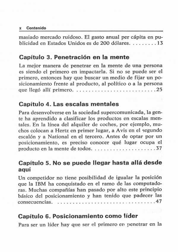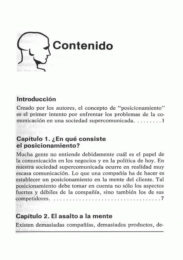 Este libro trata de un nuevo enfoque de la comunicación al que se le ha dado el nombre de "posicionamiento" los ejemplos que presentan se han tomado de la mas difícil de todas las formas de comunicación.