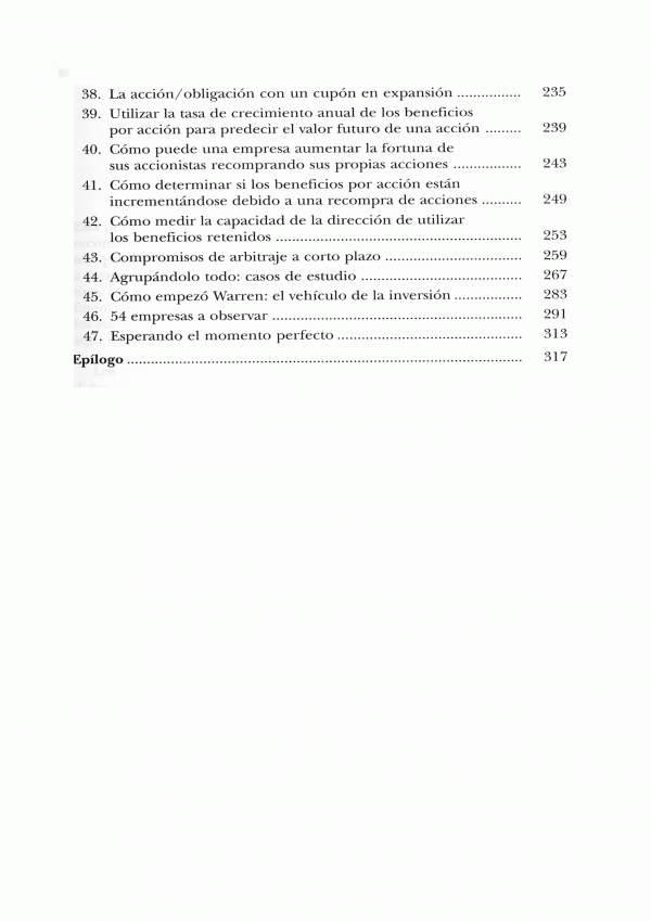 Es un análisis detallado de la metodología de inversión de Buffett. Esta metodología permite: Descubrir las empresas en las que vale la pena invertir, calcular el precio que vale la pena pagar por esta empresa, saber cuándo hay que comprar y cuándo ha llegado el momento de vender, analizar políticas de dividendos, recompras de acciones, posiciones de arbitraje y otra.