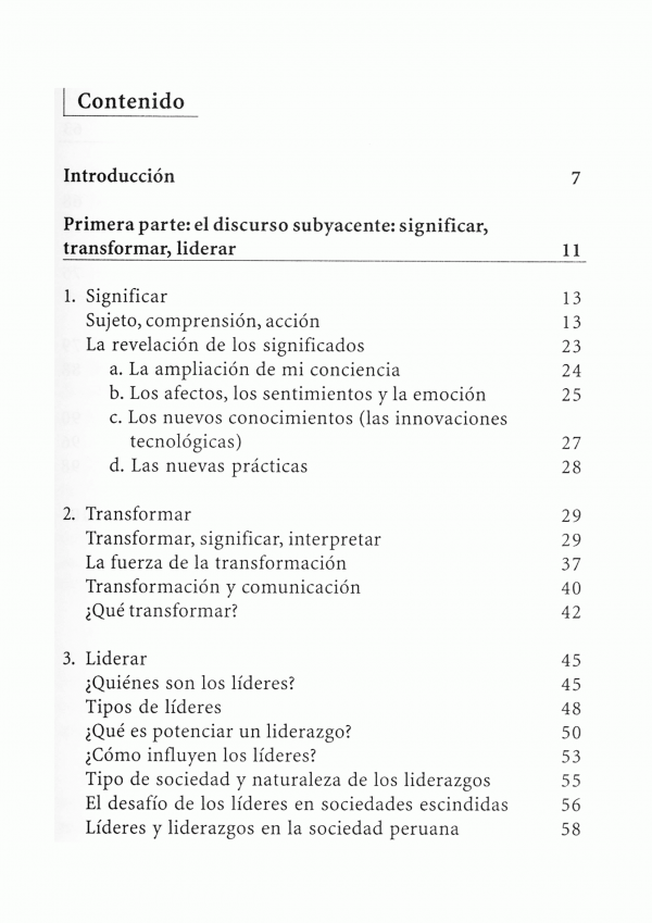 Este texto se divide en dos partes: en la primera desarrolla una reflexión acerca de la vinculación entre los procesos de significación, transformación y liderazgo; y en la segunda elaboramos algunas ideas en torno al discurso de la producción de la sociedad mundial.