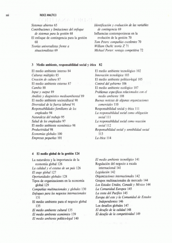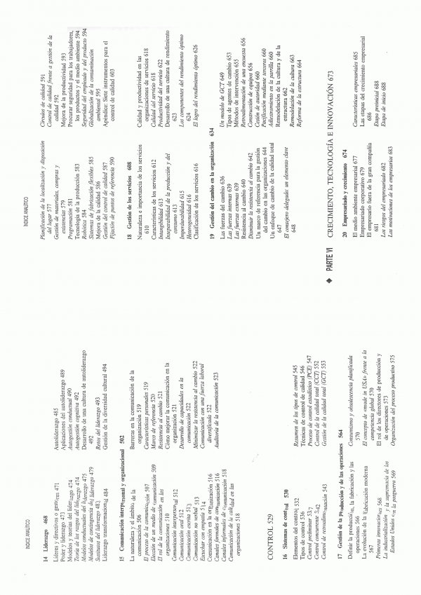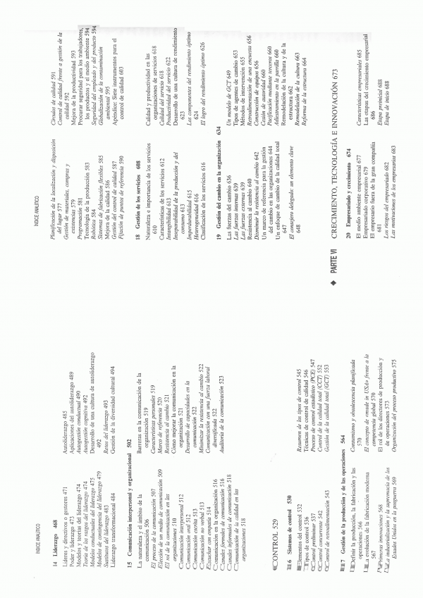 Este libro trata de materias como la competitividad y la calidad. Al inicio de cada capítulo se presentan cuadros que integran temas como inteligencia artificial en Japón y empresarios de todo el mundo. También se hay temas interesantes como la controversia respecto a los despidos. Se presentan hechos y cifras acerca del uso de las técnicas de administración de la calidad y al final de cada capítulo, aparecen casos de estudio de empresas de renombre internacional dando un total de 42 casos.
