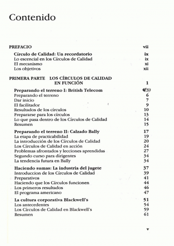El motivo principal del libros es dar a conocer los tan poco difundidos estudios de casos reales de desempeño de los circuitos de calidad. en esta edición se reúne una serie de historias de casos tomados de ocho compañías que representan una amplia área de las industrias, tanto manufacturera. estas tratan sobre la introdución y mantenimiento de circuitos de calidad y sobre muchas de las dificultades que pueden presentarse en su implementación.