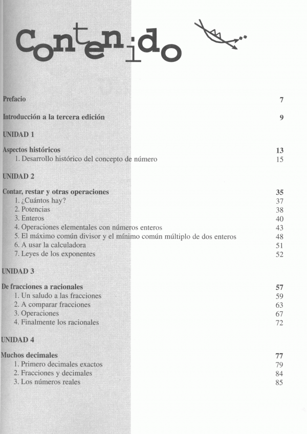 El libro describe aspectos históricos sobre el desarrollo del concepto de número, los conjunto de números, razones, proporciones y porcentaje.