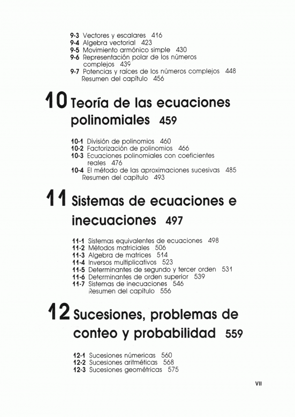 Como lo indica el título, este libro es una versión ampliada de nuestra Álgebra And Trigonometry: A Problem-Solving Approach. Este primer libro, ahora en su tercera edición, se escribió para cubrir las necesidades de los estudiantes de nuestra institución . Estamos satisfechos de que tantos maestros hayan encontrado su temática, estructura y estilo adecuados para sus estudiantes. Sin embargo, algunos maestros nos pidieron que añadiéramos tres temas importantes: vectores, probabilidades y geometría analítica. La obra incluye todo el material del texto anterior, mas dos secciones sobre vectores (secciones 9-3 y 9-4), dos secciones sobre probabilidades (secciones 12-8 y 12-9) y un capitulo completo sobre geometría analítica (capitulo 13).
