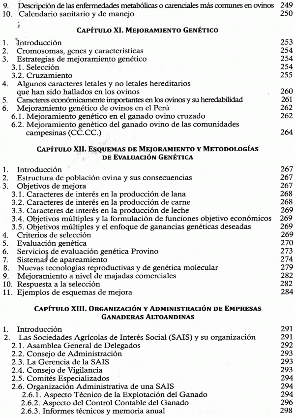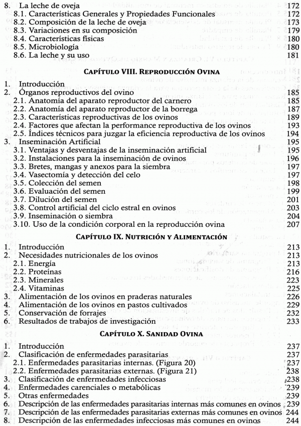 Aborda temas como el origen, posición y demostración de ovinos domésticos, estudio de la lana, razas de ovino, crianza y manejo de ovinos en la sierra, selva y costa, crianza y manejo de ovinos de leche, reproducción ovina, nutrición y alimentación, sanidad ...