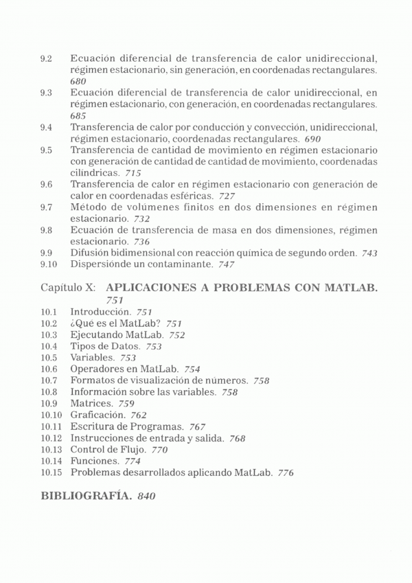 Contiene: Ecuaciones algebraicas no lineales; interpolación polinómica, diferenciación; integración; ecuaciones algebraicas lineales; sistema de ecuaciones algebraicas no lineales; ecuaciones diferenciales ordinarias; ecuaciones diferenciales parciales; volúmenes finitos y aplicaciones a problemas con Matlab.