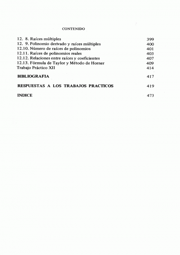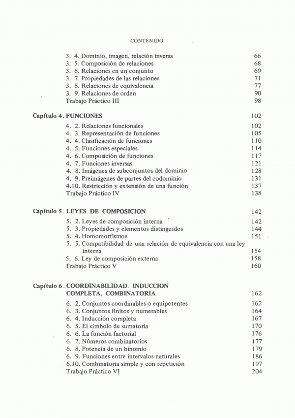 Este libro contiene : Proposiciones, conjuntos, relaciones, funciones, leyes de composición, estructura de grupo, coordinabilidad, estructuras de anillo y cuerpo, números reales, el cuerpo de los números, polinomios.
