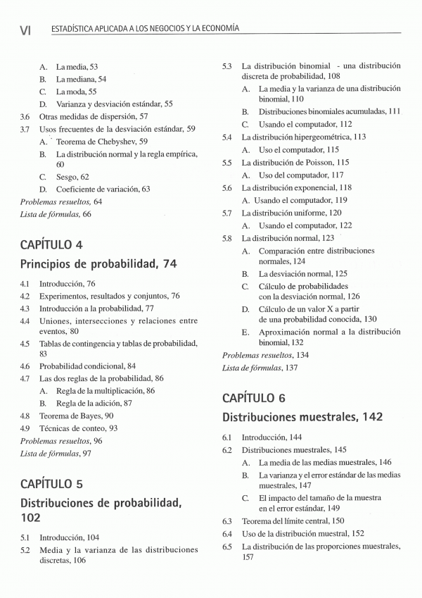 Todos los conceptos están desarrollados en el soporte de ejemplos únicos con tres partes: problema, solución e interpretación, los cuales proporcionan al lector un panorama completo.