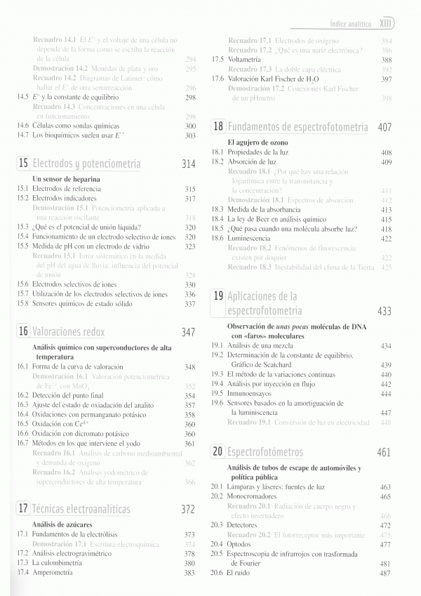 Esta obra además de la actualización y revisión de todo el libro, esta nueva edición introduce un capítulo independiente (el 22) sobre Espectrometría de masas y otro nuevo, el capítulo 29, sobre garantía de calidad. Los temas han sido introducidos e ilustrados con ejemplos concretos de interés y extraídos del mundo real. Una sucesión de recuadros a lo largo de cada capítulo amplían y explican puntos importantes que hay en el texto. Los ejemplos resueltos están pensados como una herramienta pedagógica importante para enseñar a resolver problemas. Las hojas de cálculo siguen teniendo gran importancia. En esta edición se introducen por primera vez algunas herramientas muy útiles de Microsoft Excel, como el trazado de gráficos, las funciones estadísticas, la resolución de ecuaciones.
