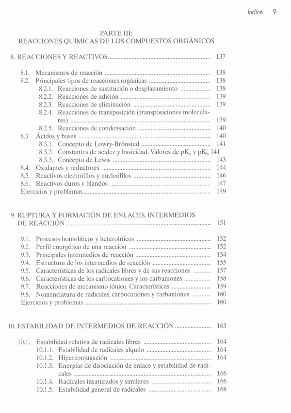 En este segundo volumen, haciendo uso de los conceptos básicos que se consideraron en el primero, se inicia el estudio general de la reactividad de los compuestos orgánicos. A los 18 capítulos o lecciones del Volumen I, se añaden ahora otros 18, también agrupados en otras cinco partes, dedicados, en su conjunto, al estudio de la reactividad de los hidrocarburos de todos los tipos y a la de sus derivados halogenados. Después de un primer capítulo, en el que se hace un estudio general de las propiedades físicas de los compuestos orgánicos, se continúa con el estudio de todos y cada uno de los distintos tipos de hidrocarburos, lo que permite no sólo conocer las características de todas las estructuras que constituyen el esqueleto fundamental de todos los compuestos orgánicos sino también el tratamiento general de los principales tipos de reacciones en las que intervienen