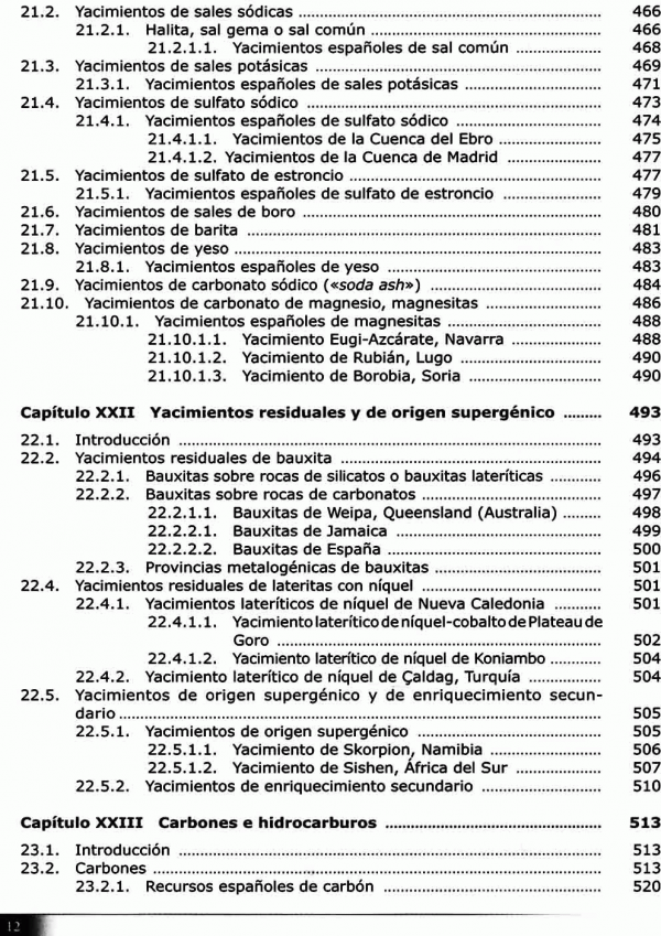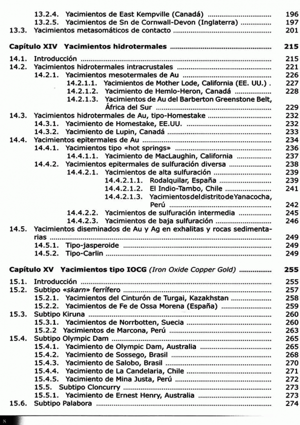 Se aborda la geología de los mismos sino también su mineralogía. Paragénesis minerales, mineralogía método de laboratorio, reservas, producciones datos estadísticos.