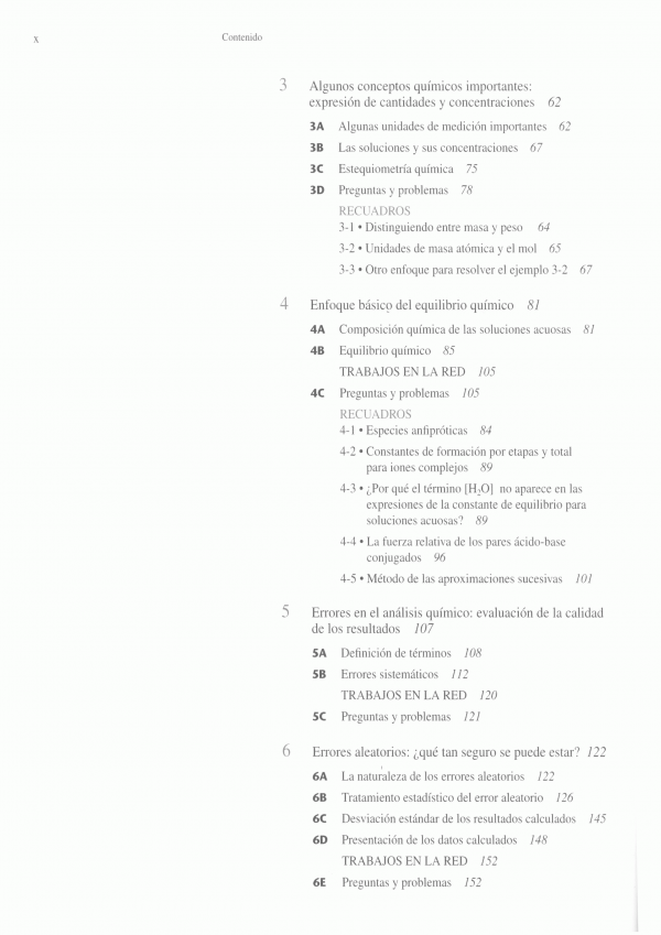 Esta edición se incorpora nuevas aplicaciones prácticas; además se propone y ejemplifica ejercicios de simualción por computadora, que incluye madelos matemáticos sencillos y trabajos enpáginas web, adecuadas al desarrollo actual de la quimica análitica