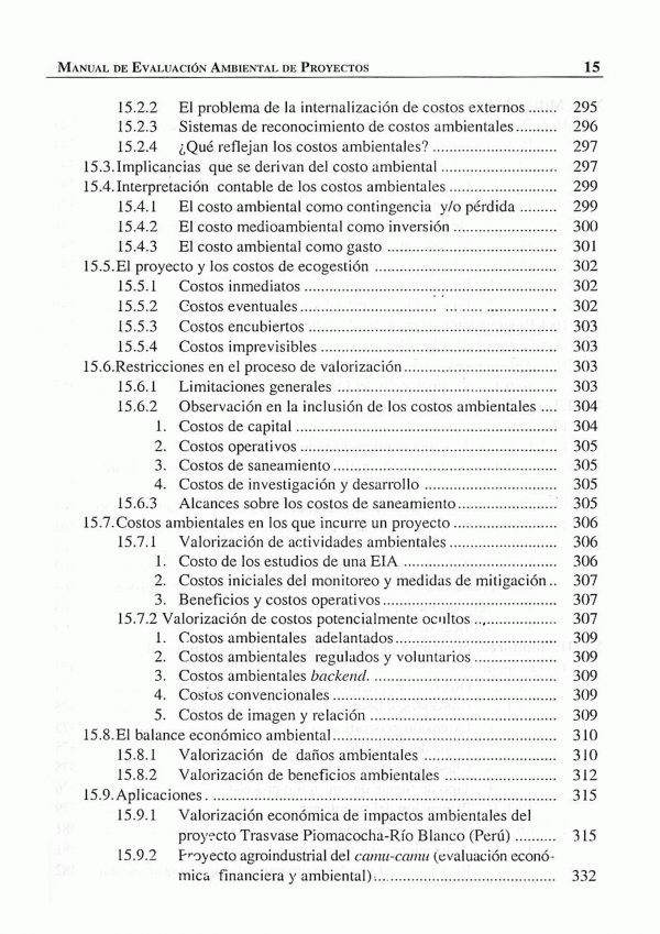 Manual de Evaluación Ambiental de Proyectos puede considerarse sin exageración como la obra largamente esperada por los especialistas en medio ambiente y su problemática, y que ahora por fin se hace una viva realidad. Si bien el libro esta dirigido al desarrollo de técnicas de formulación y evaluación de proyectos, sin embargo, en el se aborda un marco conceptual muy amplio, se analiza el medio ambiente, su valor per se y el nivel de degradación al que casi permanentemente se le somete; de igual forma se examina su relación con el crecimiento económico, desarrollo económico y desarrollo sostenible.