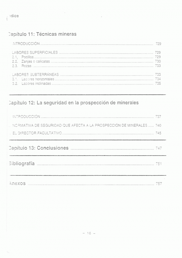 En la primera parte de este texto se descubren algunos conceptos básicos sobre yacimientos, la clasificación de éstos y los procesos de formación. En la segunda parte se estudian las diferentes técnicas de prospección: fotogrametría y teledetección, prospección geoquímica y geofísica, prospección por sondeos y técnicas mineras, etc.