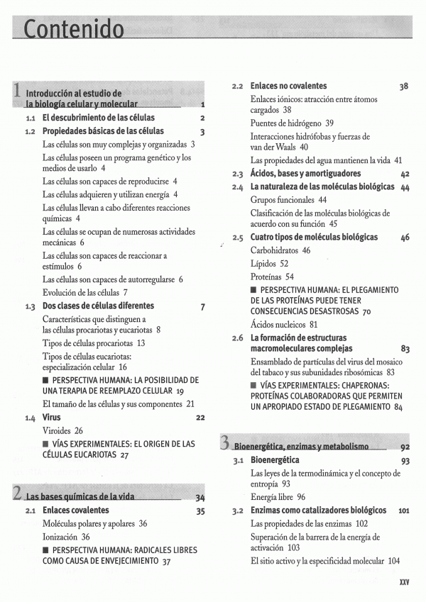 Texto basado en conceptos fundamentales , como la relación entre estructura y función moleculares, el carácter dinámico de los organelos celulares, el uso de energía química a fin de llevar a cabo las actividades celulares y asegurar la biosintesis macromolecular precisa, la unidad y diversidad a niveles macromoleculares y celular y los mecanismos que regulan las actividades celulares.