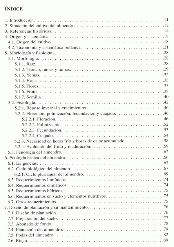 En esta interesante monografía encontrará, además del origen e historia del cultivo del almendro, detalladísima información acerca de sus aspectos morfológicos y fisiológicos, su ecología y ciclos, el diseño de su plantación, suelos, riego y poda, variedades, plagas y enfermedades.
