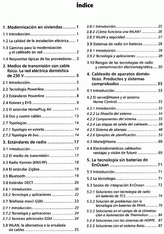 Bajo el título Domótica para viviendas y edificios, originariamente titulado Hogar inteligente, vivienda inteligente y vivir inteligente, se desarrollan tecnologías actuales, desde el punto de vista teórico y práctico, para vivir y trabajar de forma más confortable y eficiente ecológicamente. Si creemos a los estudios de mercado, cincuenta nuevas empresas e inmobiliarias por año en toda España incorporan estas tecnologías, aunque sea en casas de demostración. El número relativamente reducido se debe principalmente al elevado precio final. Estos precios, no obstante, se han ido reduciendo. Estas tecnologías se emplean normalmente en edificios nuevos. Pero ¿qué sucede entonces con los millones de edificios y viviendas ya construidos? Cada vez más la gente busca soluciones para vivir con mayor confort, seguridad y ahorro de energía. A esta pregunta responde este libro. Existen en el mercado diversas soluciones que, sin grandes obras ni instalaciones de cableado, permiten conectar en red las principales funciones de un edificio o una vivienda. Domótica para viviendas y edificios describe las redes ya existentes, eléctrica 230 V, telefónica e Internet. Estas redes pueden usarse para proporcionar mayor seguridad, confort y ahorro energético en viviendas particulares. Y todo ello sin albañilería ni necesidad de nuevos cables. En el interior del libro se tratan, entre otros, los temas: -Red eléctrica de 230 V -Tecnología Powerline -Control y vigilancia de electrodomésticos -Tecnología de radio Konnex, DECT y WLAN -Tecnología de radio sin baterías -Planificación y realización de proyectos -Tendencias actuales -Fuentes de información y glosario Este libro resultará de interés para propietarios de viviendas y apartamentos, inquilinos, arquitectos, planificadores, instaladores, especialistas en instalaciones eléctricas y electrónicas, técnicos de radio y televisión, técnicos de seguridad electrónica, calefacción, ventilación, aire acondicionado e instalaciones sanitarias.