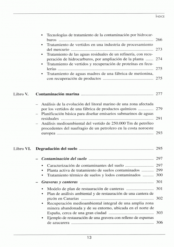 Definiciones, conceptos y criterios básicos. Ecología aplicada. Contaminación atmosférica. Contaminación de las aguas continentales. Contaminación marina. Degradación del suelo. Ruido. Residuos. Previsión y control. Planificación.
