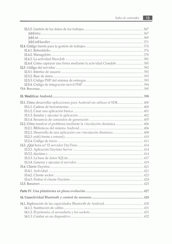 Android funciona en una gran variedad de dispositivos móviles, desde smartphones a tablets, pasando por incontables gadgets. Sin duda es la plataforma móvil más extendida del mercado. Casi nada es ya imposible gracias a Android. Y ahora nada en Android será imposible para nosotros. Este libro constituye una guía de aprendizaje exhaustiva para programadores de Android. Se tratan aspectos importantes de la arquitectura del sistema, así como distintas estrategias de implementación. Profundizará en el SDK, construirá aplicaciones WebKit con HTML 5 y aprenderá a extender, e incluso sustituir, características propias de Android mediante fascinantes ejemplos. Contiene detalladas aplicaciones de ejemplo sobre temas avanzados. Analiza aplicaciones completas, tecnología de localización, aplicaciones Web para Android, Bluetooth, sensores, AppWidgets y dispositivos de integración. Asimismo, incluye programación de aplicaciones en C con Android Native Development Kit.