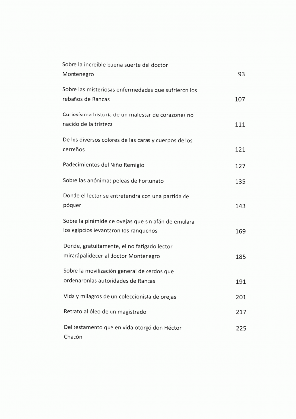 La obra trata de una novela con el título redobles por rancas al comienzo, la novela parece un relato costumbrista, bañado con un halo de misterio e incipiente oscuridad, aunque este inicio transcurre antes del anochecer. Es a través de una sinécdoque que el doctor don Francisco Montenegro es aludido a través de un misterioso traje negro que atrapa desde su aparición en escena y mantiene absorto al lector, aún cuando no se descubre la real identidad de quien lo viste.