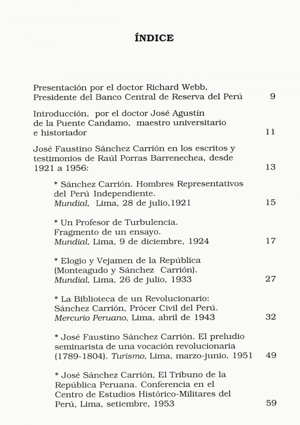En la tribuna, en el periodismo y en el aula, Sánchez Carrión es el más esforzado combatiente del pensamiento en la lucha por la libertad. La cátedra y el periodismo se convirtieron en escaño para servir al ardor de su bella vocación tribunicia.