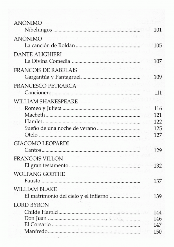Este libro es una recopilación de resúmenes de 172 obras maestras de la literatura universal con 123 autores, elaborado por el reconocido investigador César Toro Montalvo, además de los didácticos resúmenes el autor incluye opiniones sobre los autores de las obras reseñadas, se encuentran los resúmenes de las obras como: la Ilíada, La Odisea, Los Trabajos y los días, La Teogonía, Odas, Fábulas, Las Euménides, Las Suplicantes, Agamenón, Los persas, Los siete contra Tebas, Edipo Rey, entre otras.