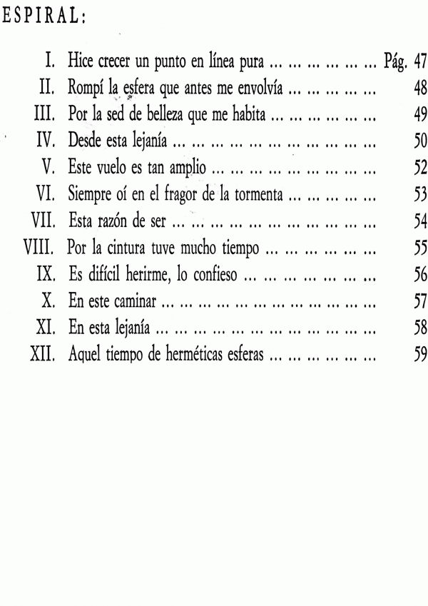 | 861.64 / E78 Estelas / [Impreso] | 861.64 / H51 Antología Poética / [Impreso] | 861.991 / M26 Por esta Claridad / [Impreso] | 862 / U91 Íntima Dimensión / [Impreso] | 863 / M Mi Tío el Empleado / [Impreso] | 863 / M26 Ez Ezazu Sardinarik Eskatu Garaiz Kanpo / [Impreso] | 863 / V32 La Guerra del Fin del Mundo / [Impreso] |