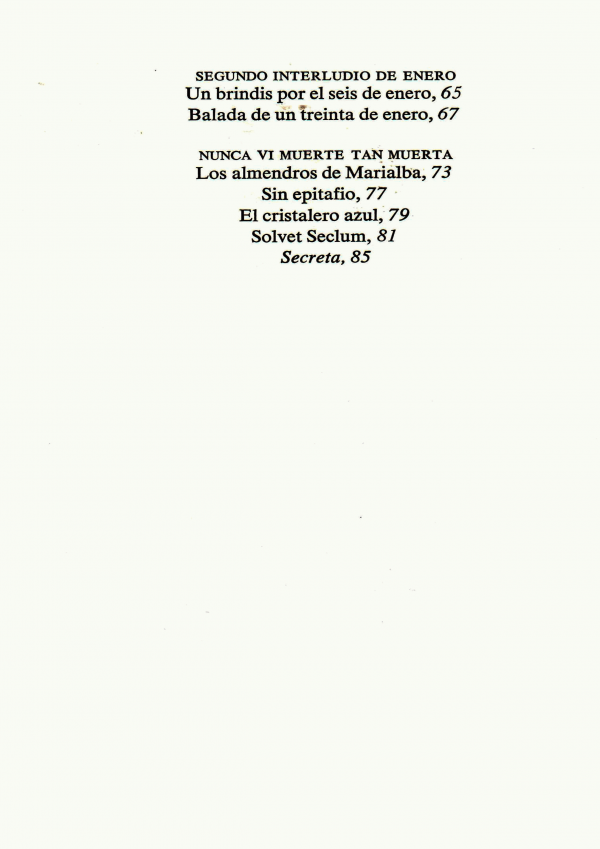 | 861.6 / N94 Naturaleza no Recuperable: [Impreso] (Herbario y Elegías) 1972 - 1974 / | 861.6 / O36 País: [Impreso] Antología 1955 - 1970 / | 861.6 / P54 De lo que Viene Como si se Fuera / [Impreso] | 861.6 / R74 Casi una Leyenda / [Impreso] | 861.64 / C Poesía Completa / [Impreso] | 861.64 / E78 Estelas / [Impreso] | 861.64 / H51 Antología Poética / [Impreso] |