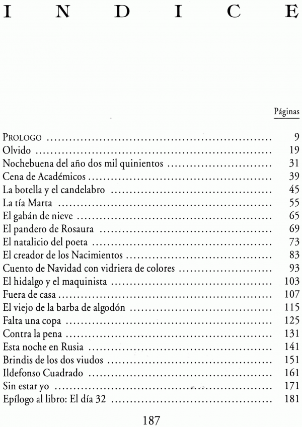 El libro consiste en una colección de veinte relatos de tema navideño, cuyo escenario pasa de castizo a cosmopolita, siendo la narración a veces fantástica y a veces costumbrista.