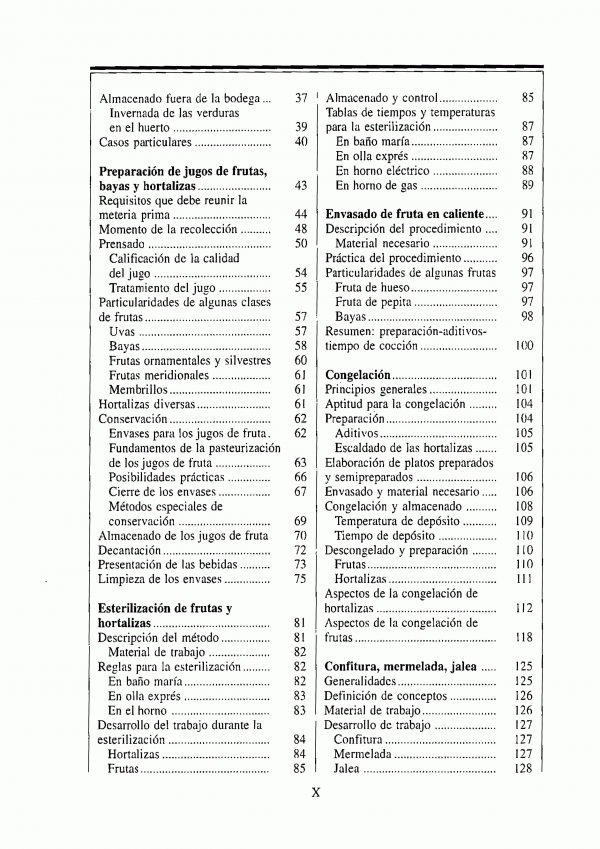 Sustancias que entran en la composición de frutas y hortalizas e importancia de las mismas para la alimentación del hombre. Causas de la descomposición. Almacenado de frutas y hortalizas frescas. Preparación de jugos de frutas, bayas y hortalizas. Esterilización de frutas y hortalizas. Envasado de frutas en caliente. Congelación. Confitura, mermelada, jalea. Desecación. Especialidades. Economía del almacenamiento.