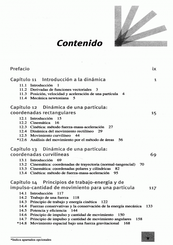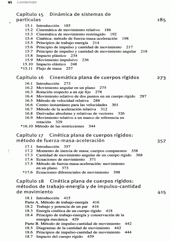 Ingeniería mecánica: dinámica ofrece al estudiante la oportunidad de dominar los principios de la dinámica por medio del razonamiento , la practica, el estudio y el análisis mas que por la memorización. Para ellos, se ha incluido en esta obra un gran numero de problemas de ejemplo, que muestran de manera sencilla los fundamentos de la mecánica, y otros de practica, aplicables a diseños de ingeniería.