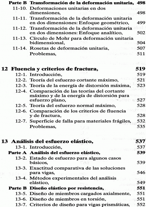 En esta nueva revisión se considera un buen numero de temas de vanguardia. se proporciona una expresión analítica avanzada para la carga cíclica y se presenta una novedosa superficie de falla para materiales frágiles. esto ultimo complementa la famosa superficie de fluencia de van Mises para materiales dúctiles, se incluyen los fundamentos de la base probabilistica del diseño estructural, mientras que los temas mas especializados al respectos se han omitido en esta edición.