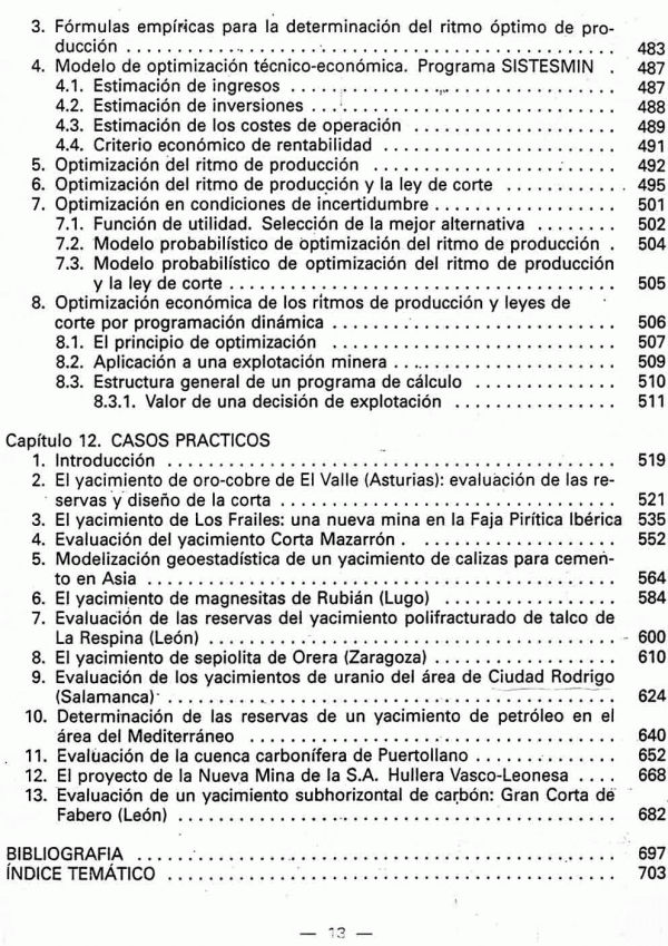 En esta obra se describen las actividades involucradas en la investigación y modelización de yacimientos, diseño y evaluación de explotaciones; complementándose el texto con la descripción de diversos proyectos mineros reales -en marcha o en fase de desarrollo-, en los que se ha seguido la metodología de estudio expuesta en los capítulos del Manual. Éstá destinado a estudiantes y profesionales del sector extractivo de recursos minerales, desde la investigación hasta la explotación.