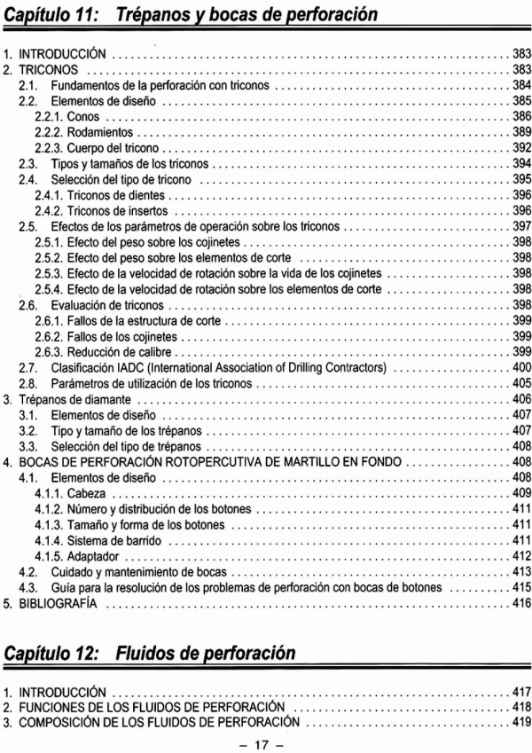 La perforación de sondeos, tanto en minería como en obra publica y construcción, se configura hoy día como un sistema de imprescindible para el reconocimiento de los terrenos y en la explotación de los recursos que alberga el subsuelo. Comprende 18 capítulos, recoge una amplia descripción de los principales métodos de perforación, los principios de funcionamiento, los procedimientos de evacuación de los detritus, los campos de aplicación, etc.