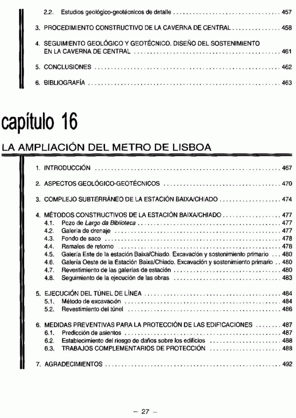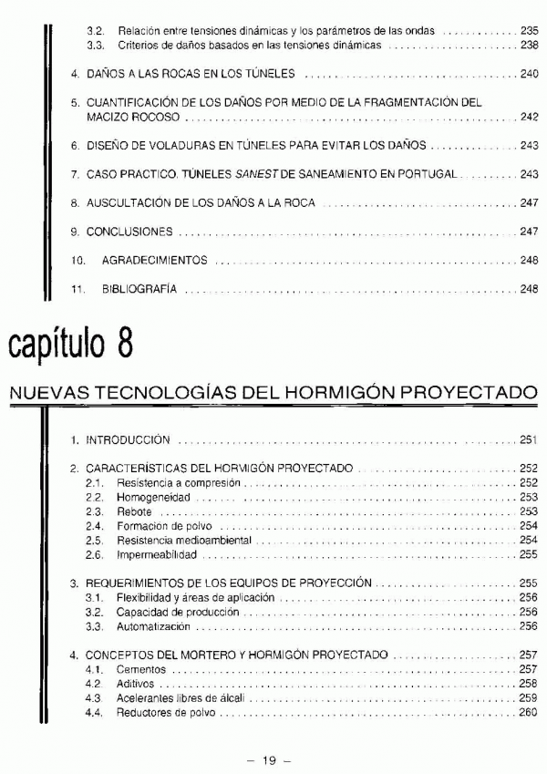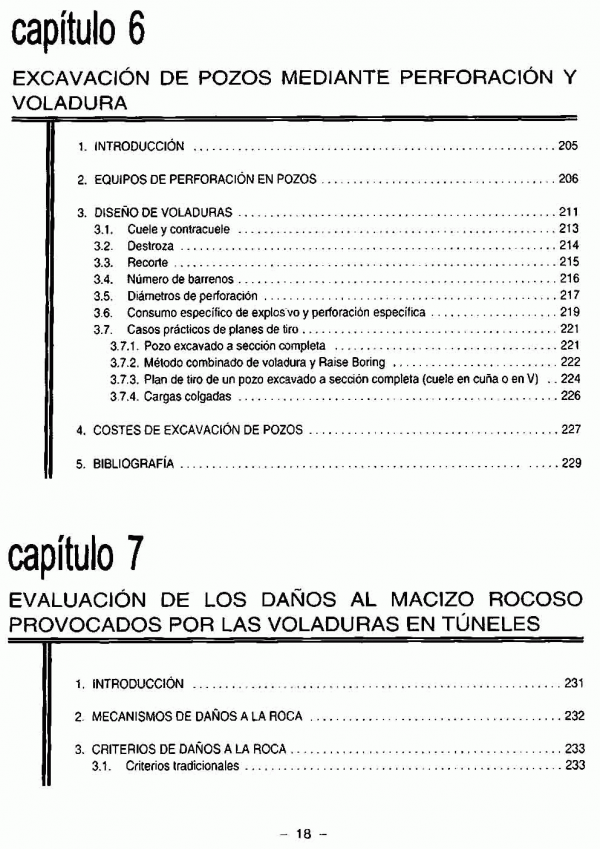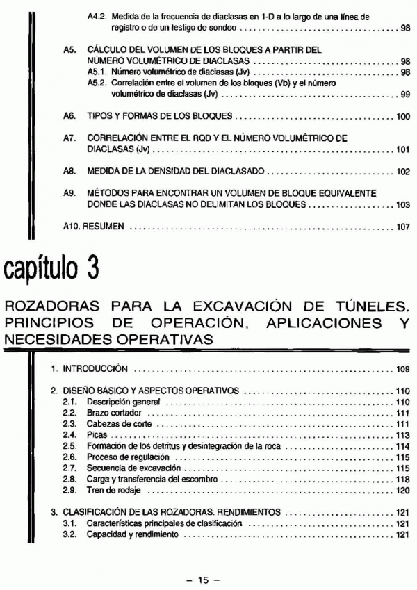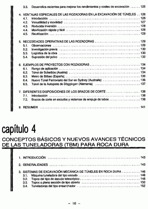 En este volumen se abordan, en sus 16 capítulos, temas como: geología de túneles; excavación con rozadoras y tuneladoras (TBM); excavación de pozos y chimeneas; daños inducidos por voladuras; túneles de carreteras y funiculares; ventilación de túneles de carretera; los túneles de Oropesa; la Central de Ricobayo y el Metro de Lisboa.