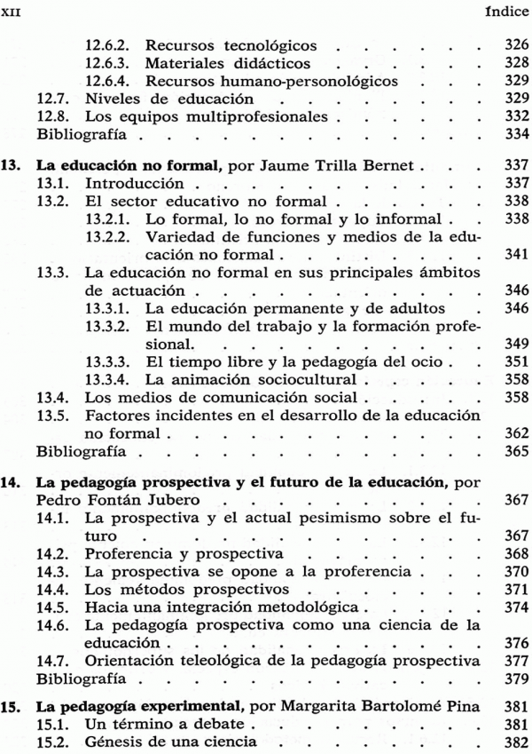 Educación, pedagogía y ciencias de la educación; teoría y teorías de la educación; antropología pedagógica; aprendizaje y educación; psicología de la educación; los aspectos sociales de la educación; tendencias pedagógicas contemporáneas; tecnología y educación; la didáctica contemporánea; organización educativa; la orientación educativa; educación especiale, etc.