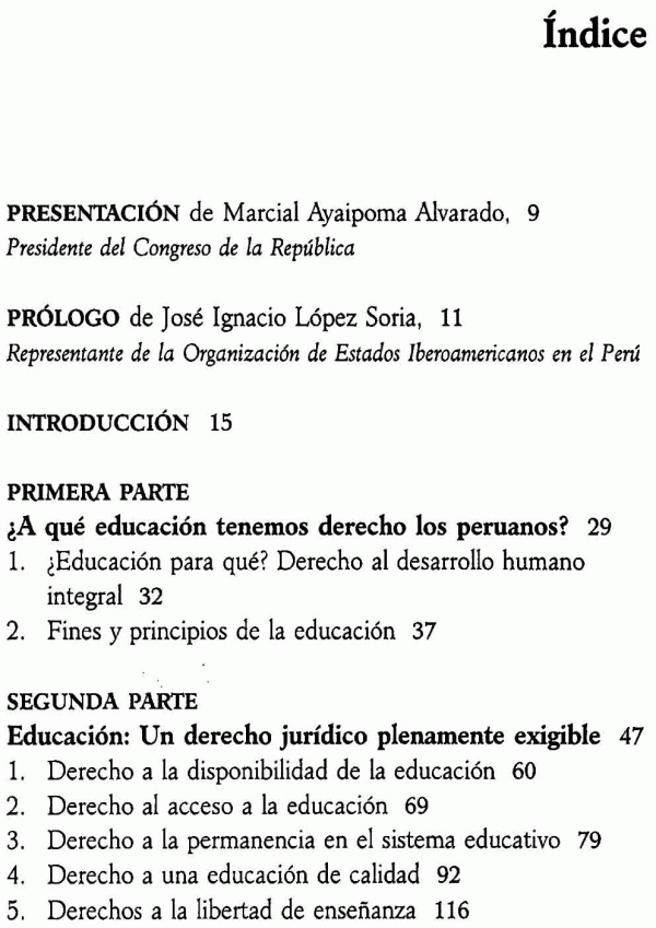 Contenido: A qué educación tenemos derecho los peruanos? -- Educación un derecho jurídico plenamente exigible -- Para exigir el derecho a la educación : el papel de las instituciones, del estado y de la sociedad -- Responsabilidad y funciones en el sistema educativo.