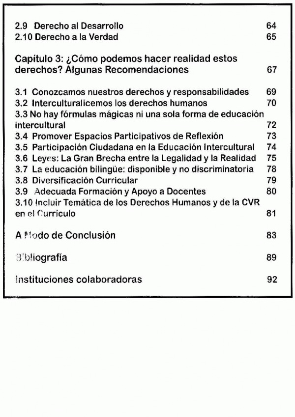 TextoIdioma: Español Lima - Perú: APRODEH, CUSO, Proyectos Arguedas, 2008Edición: Primera ediciónDescripción: 91 páginas : Ilustraciones blanco y negro, figuras, gráficos ; 15 x 22 centímetrosISBN: - 9789972863066