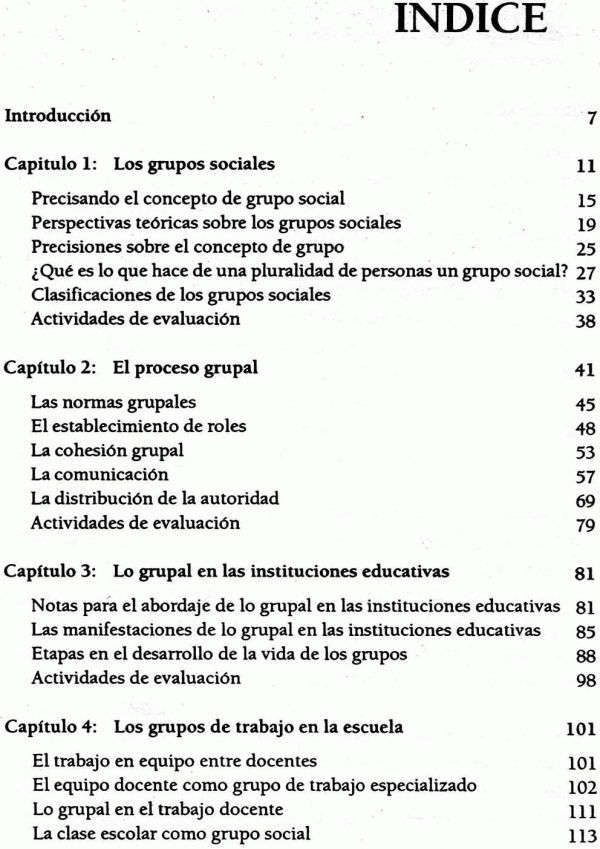 El texto propone una mirada amena, flexible e innovadora que facilita el autoanálisis y la reflexión (individual y/o grupal) sobre la situación de los grupos en las instituciones educativas.
