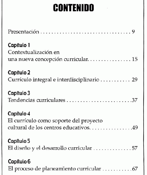 El autor propone una nueva concepción y práctica curricular, revisa las nuevas tendencias cuniculares, propone el currículo integral e interdisciplinario y contextualiza las tendencias culturales de los centros educativos.