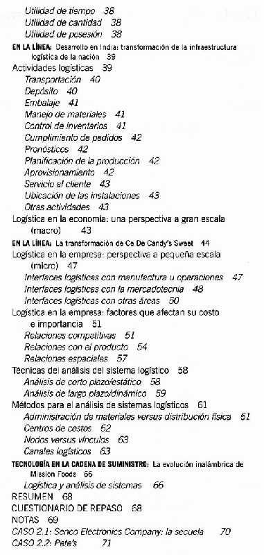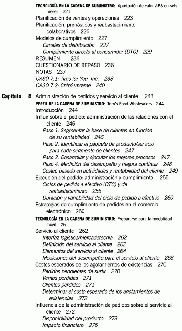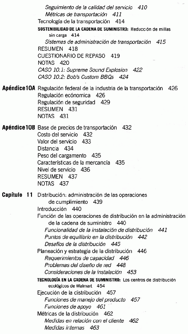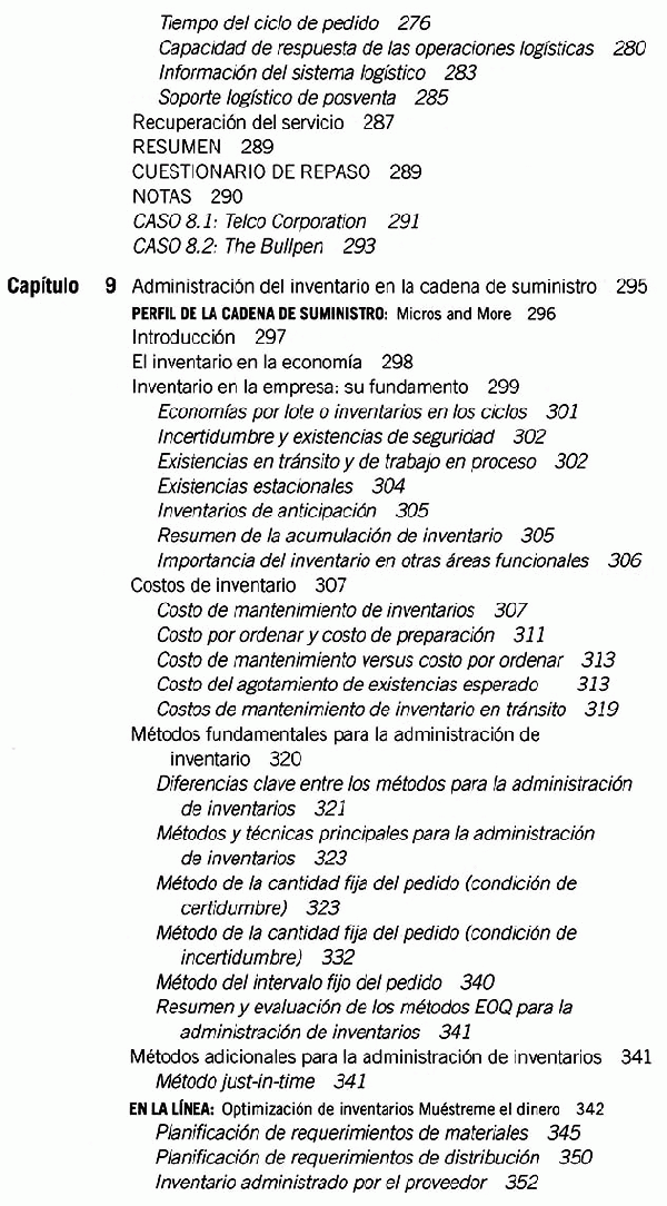 Administración de la cadena de suministro. le brinda una solida teoría logística y aplicaciones practicas útiles para el desempeño de Una perspectiva logística, refleja la naturaleza siempre en movimiento de este campo en rápida evolución; los autores ofrecen el pensamiento más actual y exhaustivo sobre tema, combinado con una perspectiva logística autenticada del mundo real; su organización brinda un marco lógico para comprender de manera significativa de los principios y conceptos propios de esta área. La parte I ofrece un marco para que el lector comprenda la administración de la cadena de suministro y algunos de sus componentes esenciales. La parte II se enfoca en los factores estratégicos. La parte III se concentra en áreas de los procesos clave en el cumplimiento de la cadena de suministro. Con la parte IV el lector se adentrará en el mundo de la planificación, la contratación y las operaciones de la cadena de suministro.