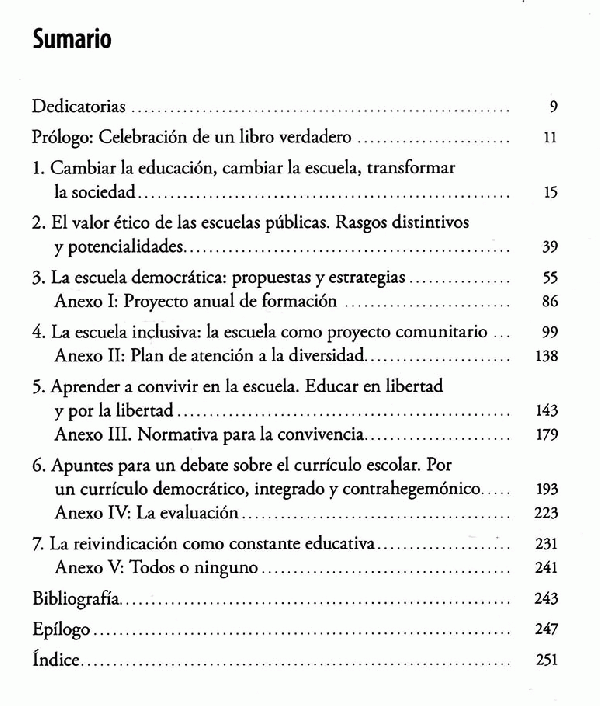 Es un libro que reivindica la educación como derecho inalienable de la persona y no como un negocio en manos de los mercados. Que reivindica las escuelas como espacios de vida, de creación y recreación de la cultura, de vivencias democráticas, de experiencias de convivencia en las que la sensibilidad, la ternura, la alegría, la paciencia, la perseverancia y los afectos permitan combatir los procesos de deshumanización creciente, de expolio natural y de marginación y exclusión social.