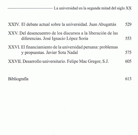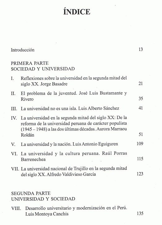 Dar a conocer el pensamiento universitario en el Perú en sus autores y fuentes mas saltantes en cada una de sus etapas es una tarea de rescate fundacional de nuestra memoria colectiva. Lectura critica como descolonizacion intelectual y construcción nacional de una peruanidad universal. En este curso, la universidad como universitas se distingue en el tiempo de toda particularidad individual. Contamos en sus permanencias y cambios como produce y reproduce campos y hábitus de sociedad y Estado en diferentes tiempos socioculturales entre la centralidad del poder o su democratización como institución.