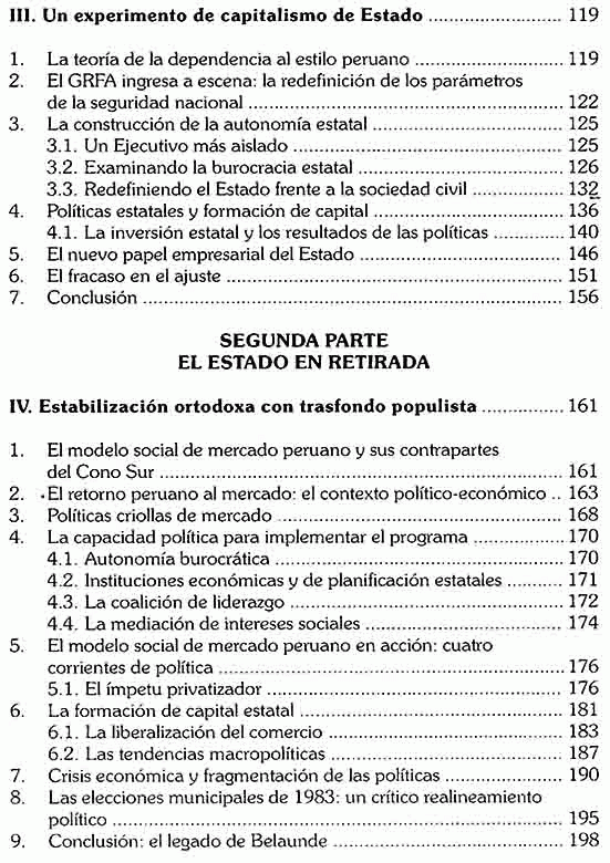 La autora analiza tres fases principales de la intervención del estado: Se explica el impresionante giro del país desde el punto de vista de la modernización institucional y la reforma interna del Estado.