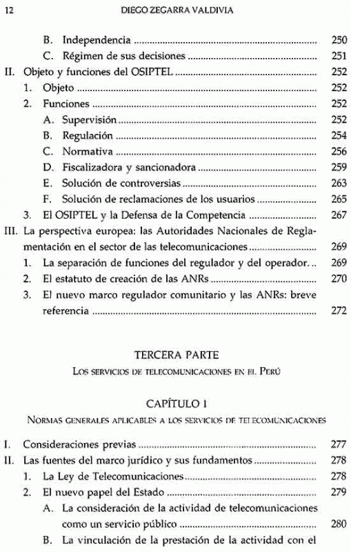 Servicio Público y Regulación Marco Institucional de las Telecomunicaciones en el Perú / Diego Zegarra Valdivia [Impreso]