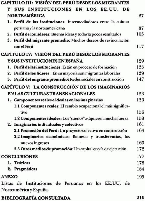Resumen: Las tesis centrales del presente libro son: a) Los migrantes peruanos de los ultimos 15 años son los lectores principales del tradicionalismo. d)su vocación gregaria, que tiene su origen en la cultura andina, facilita la formación de sus organizaciones y el liderazgo en la diaspora. c)Los cambios Sociopoliticos y culturales ocurridos ene le Perú influyen en los imaginarios individuales y colectivos q
